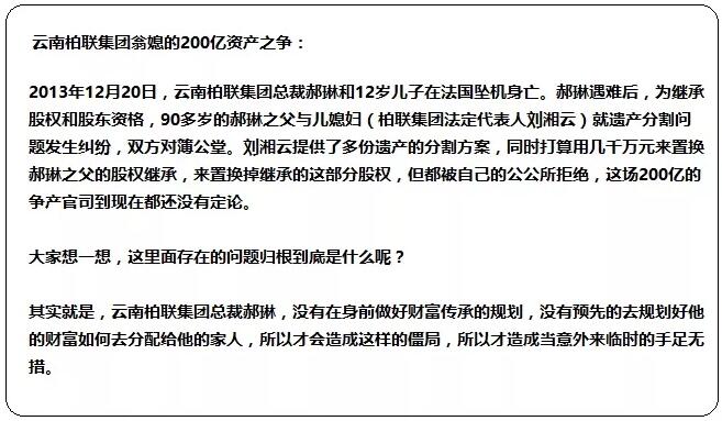 一個是沒有進行規劃的雲南柏聯集團的爭產案例;