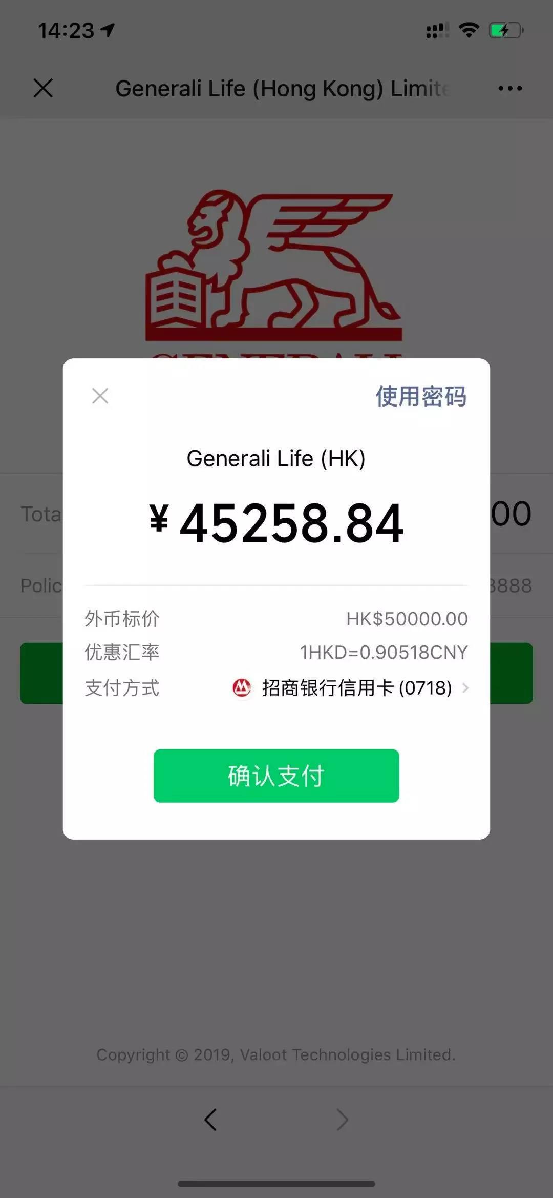 輸入密碼,付款,匯率按照付款時的即時匯率進行換算