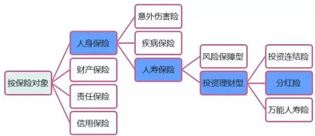 一般情況下,根據保險對象不同,保險產品分有以上幾種分類,如圖所示,分紅險是其中的一個分支。
