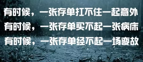有時候,一張存單扛不過一場意外;有時候,一輩子存款養不好一場大病;有時候,一生的存款扛不住一次生意負債。