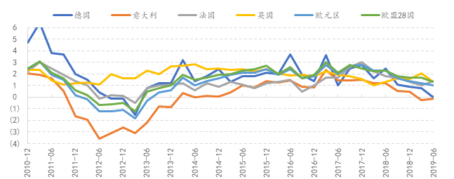在連續貨幣寬鬆的刺激下,理論上歐洲經濟將在2020年上半年下行見底,有望回升。