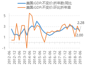 圖表4:2019-2020年美國GDP穩中有落(%)