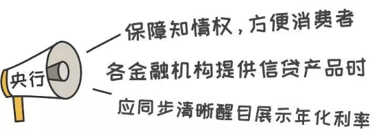 近期,中國人民銀行指導市場利率定價自律機制,推進“明示年化利率”的工作,要求各商業銀行、互聯網金融平臺等必須在相關貸款產品中明確展示年化利率,幫助消費者瞭解真實借款成本。