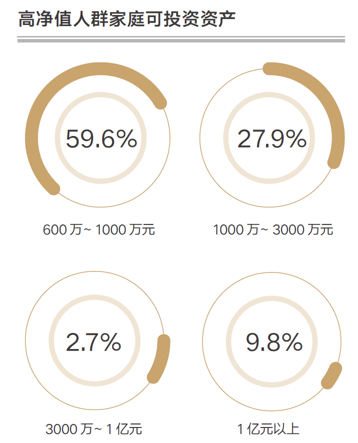 600萬~1000萬元是達標的門檻,約六成高淨值家庭的可投資資產位於這一區間。