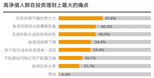 在投資理財上,高淨值人群最關心的宏觀環境,包括經濟環境和國際政治環境等,其次是最近1~2年頻繁出現的爆雷事件。
