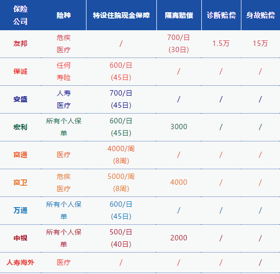 友邦在隔離賠償的基礎上,額外搭配一筆過診斷賠償和身故賠償。友邦、宏利、富衛和中銀人壽提供隔離賠償。