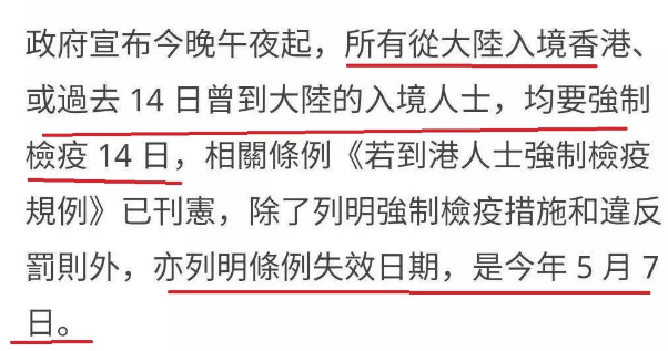 這還不算,關於昨日開始的【強制檢疫】條例訂明失效日期為5月7日。意味著什麼呢?現在為大家一一解讀。