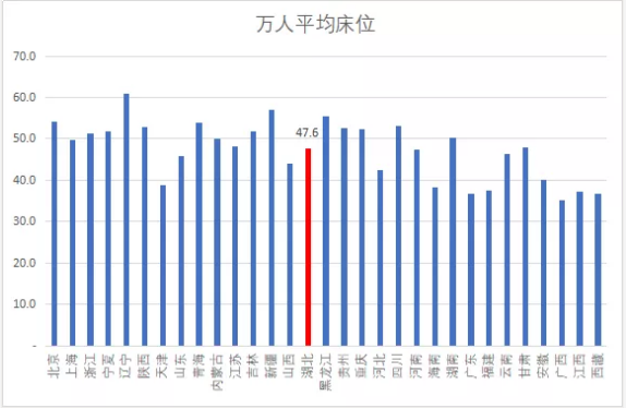 疾病面前,醫療資源成為稀缺品。有數據顯示,全國總床位數652萬張,萬人平均床位46.6張,而湖北的醫療資源處於中國的中游水準,萬人平均床位47.6張,甚至超過全國平均水準。醫療資源正在越來越多被人關注,成為購買健康保險的考核因素。