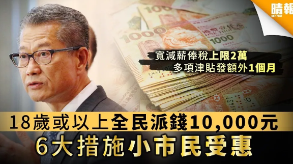 -18歲或以上香港永久居民市民派發現金1萬元,細節有待公佈