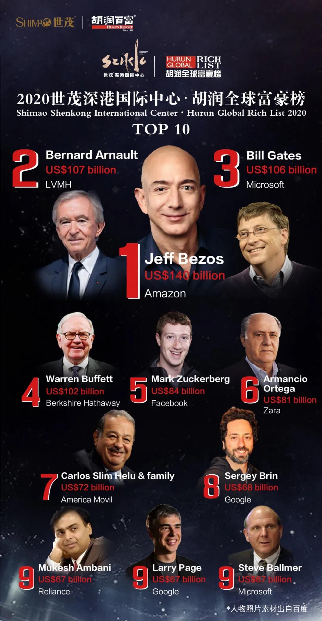 胡潤研究院發佈《2020世茂深港國際中心·胡潤全球富豪榜》(Shimao Shenkong International Center·Hurun Global Rich List 2020)。上榜企業家財富計算截止日期為2020年1月31日。這是胡潤研究院連續第九年發佈“全球富豪榜”。
