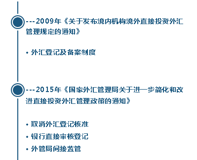 根據2009年發佈的《關於發佈境內機構境外直接投資外匯管理規定的通知》,外管局對境內機構境外直接投資及其形成的資產、相關權益實行外匯登記及備案制度。