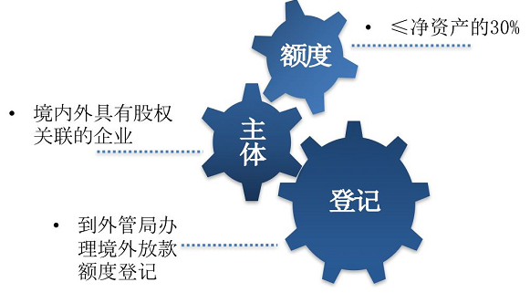 企業進行境外放款需滿足主體、額度要求並進行外匯登記,如下圖: