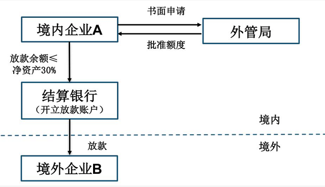 在滿足以上要求後,境內企業經結算銀行通過以下流程達到境外放款的目的。