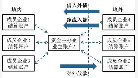 跨境雙向人民幣資金池的結構大致如下,跨國公司通過開設境內外資金主辦企業專門帳戶進行資金歸集,再統一進行境內外資金的劃撥,如下圖: