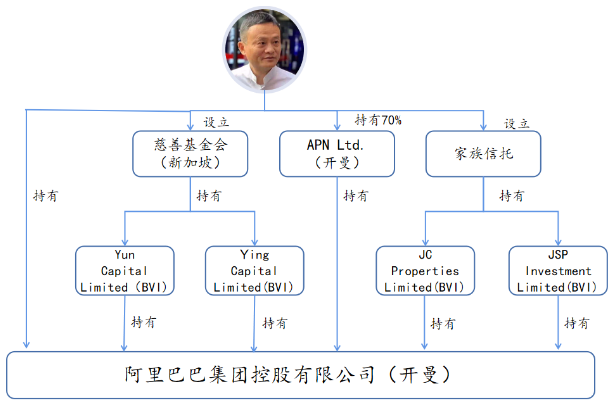 馬雲先生在新加坡設立了慈善基金會(The Jack Ma Philanthropic Foundation),用慈善基金會間接持有阿裏巴巴開曼的股份。