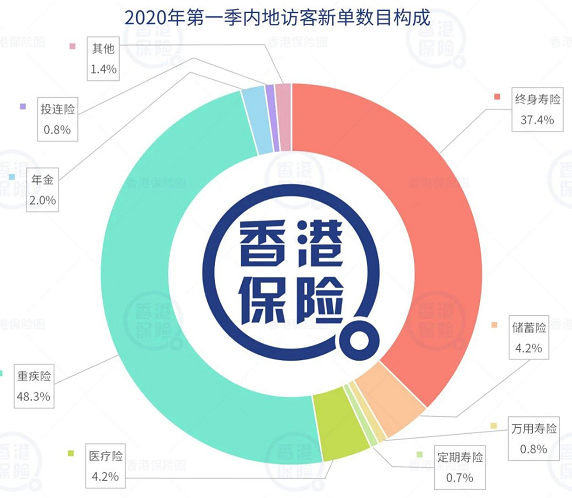 重疾險的數量最多:2020年一季度占比為48.3%,略低於2019年(58.1%);