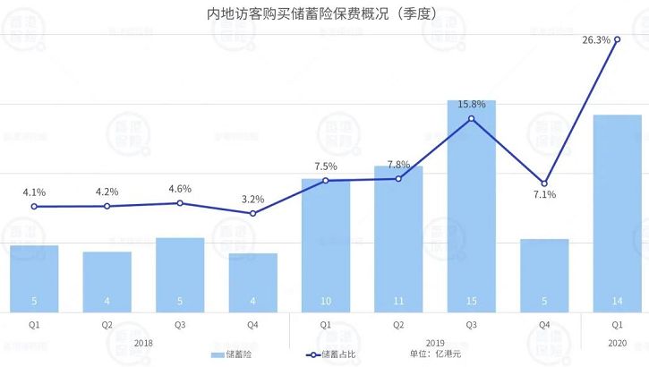 儲蓄險的保費大幅上漲:2020年一季度占比高達26.3%,2019年一季度占比僅為7.5%;