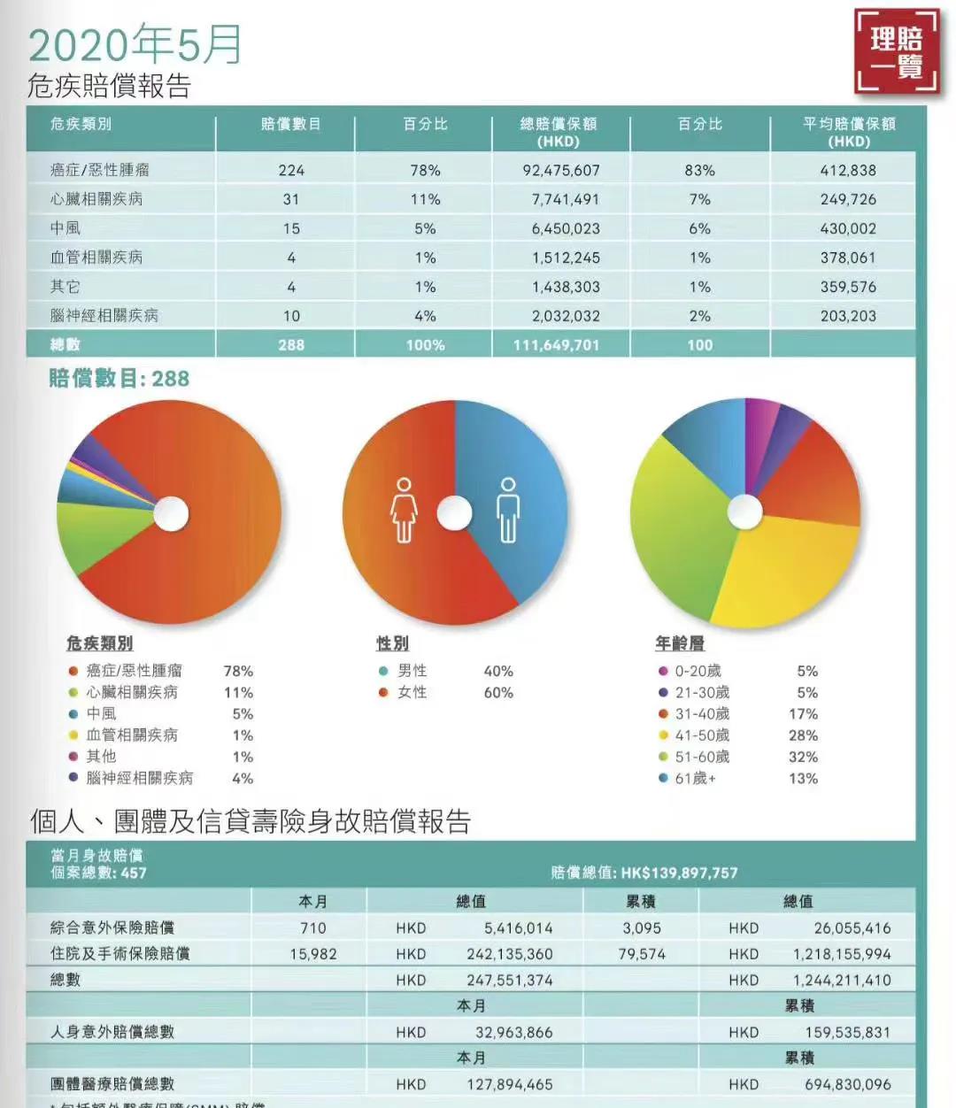 友邦AIA公佈了2020年3-5月危疾理賠金額曝光,總賠償打到3.8億港元。