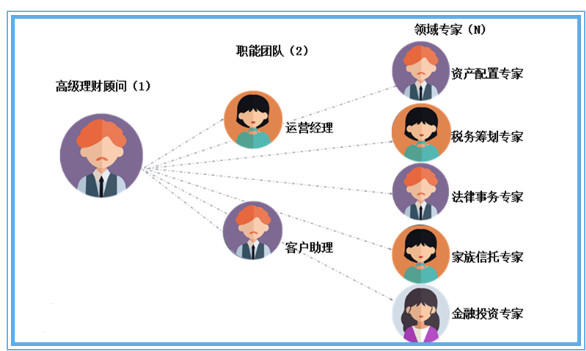 具體可以搭建1+2+N的團隊結構模式,實現高效為高淨值客戶提供一站式財富管理服務的目的。