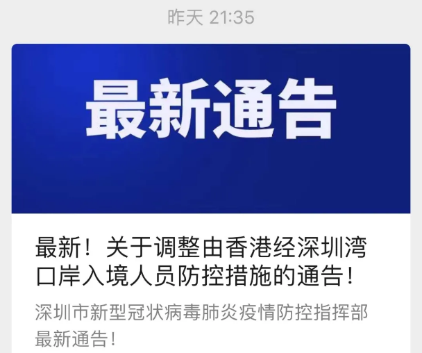 為妥善應對近期香港新冠肺炎疫情變化,保障深圳灣口岸入境人員的安全健康和通關秩序,經粵港雙方溝通協商,現通告如下: