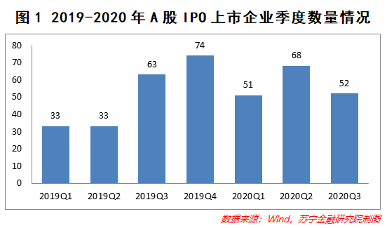 由於註冊制的推進,越來越多的企業獲得了快速上市的機會,IPO企業數量逐季攀升,趨勢非常明顯。Wind數據顯示,2020年一季度與二季度,包含科創板在內的A股IPO數量分別為51家、68家,較去年同期分別增長54%、106%。步入三季度的7月,IPO數量增長更為迅猛,一個月左右的時間,IPO數量已達52家,直逼2019年7月-9月三個月的增量。
