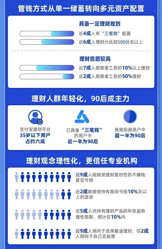 8月10日,上海高金金融研究院聯合支付寶發佈的《2020國人理財趨勢報告》顯示,近年來隨著中國居民財富的爆發式增長,居民財富一改過去的單一儲蓄結構,向理財、證券、基金等多元資產配置轉型。