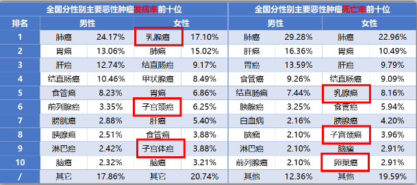 在女性發病率前十位的癌症中,乳腺癌、宮頸癌、卵巢癌和子宮體癌都赫然在列,而且致死率也比較高。