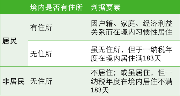 可見,判斷個人是否為中國稅務居民,並不以國籍作為判據,而是區分在境內否是有住所、且需按不同的要素予以界定。