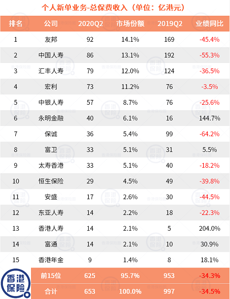 前五名保險公司業績同比大跌,宏利的下滑最少,僅有3.5%,這也依賴宏利公司在本地市場多年的耕耘和良好的口碑。