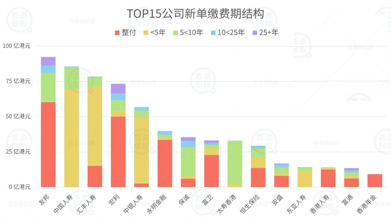 2020年前半年,香港各壽險公司的繳費期結構有明顯區別。