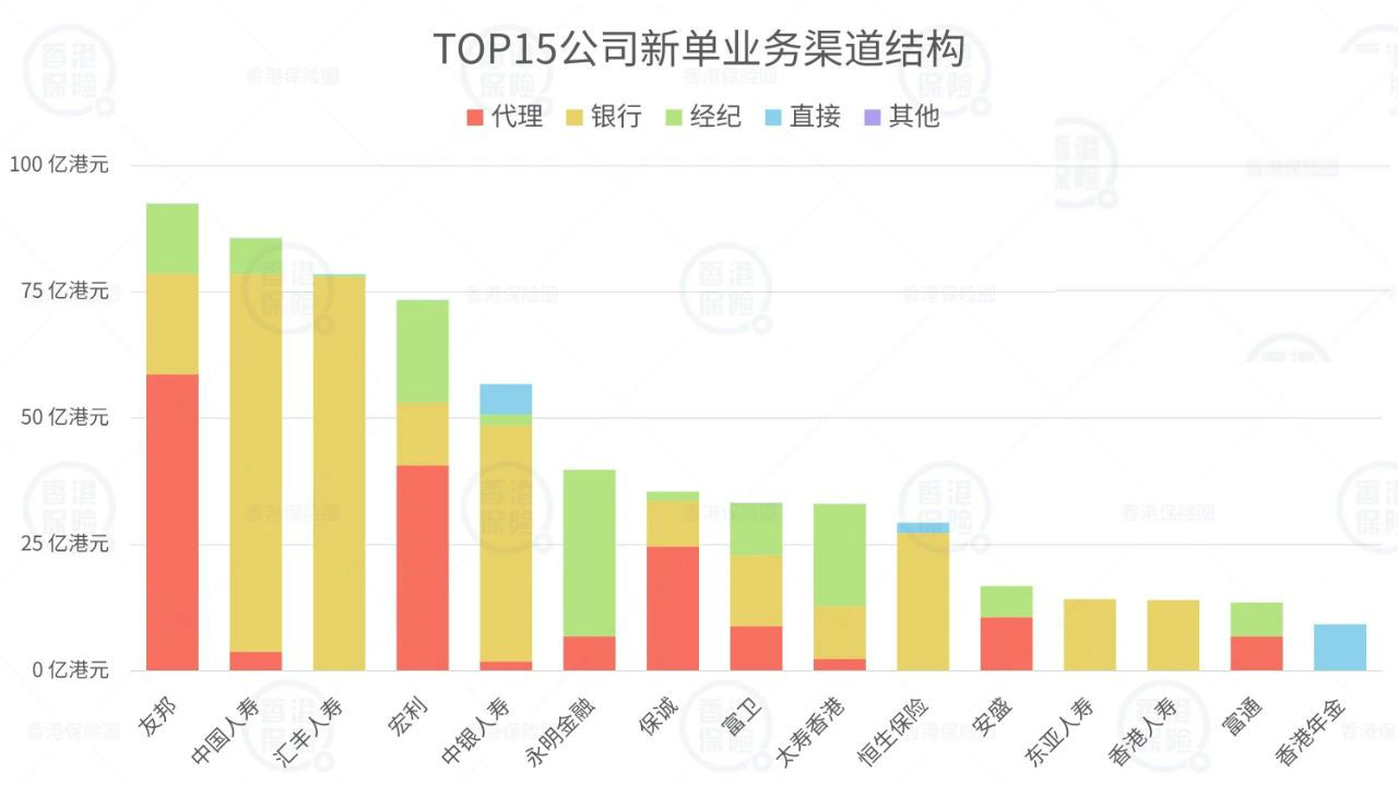 經紀管道中,友邦、宏利、永明金融、太壽香港、富衛、安盛、富通的占比較高。