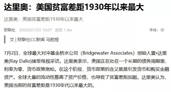 疫情過後,大放水將讓財富格局完成一次再分配,貧富差距被再次遠遠拉大。因為大放水帶來的副作用,就是“洗劫”底層的老百姓,劫貧濟富。