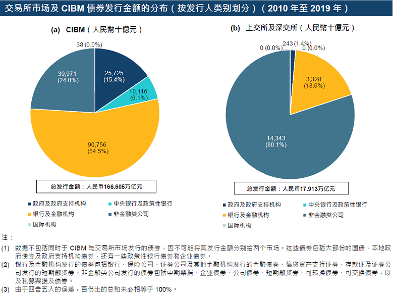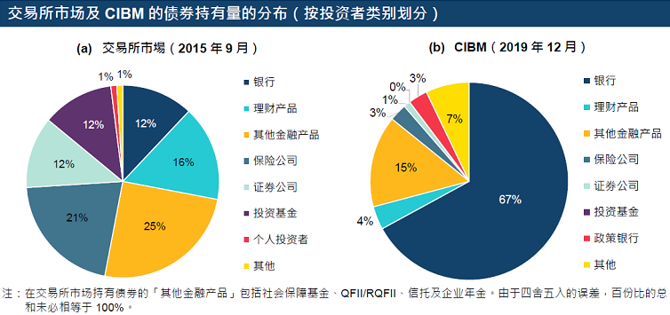 在內地,交易所債券市場較傾向服務非金融類公司,為這些公司提供直接融資,起著支持實體經濟的作用。在投資者基礎方面,交易所債券市場的投資者類別較為均衡,CIBM的投資者則以銀行為主。