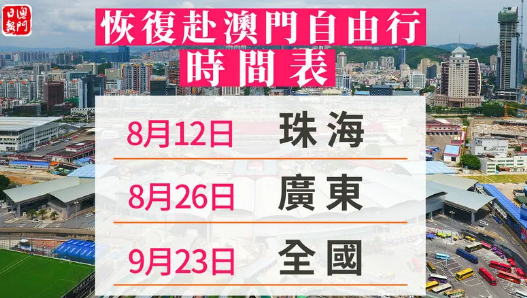 8月26日起,廣東省居民赴澳門旅遊簽注恢復辦理;