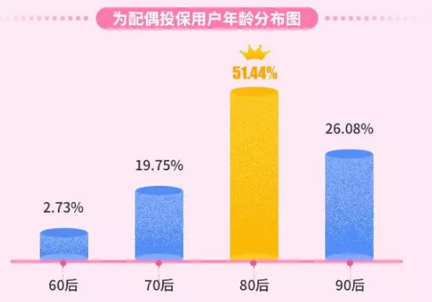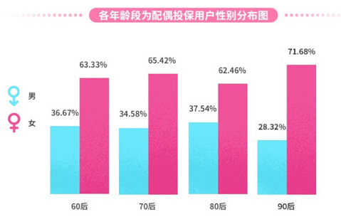 其中,最心疼老公的要數90後的仙女們了,為配偶購買保險的比例高達71.68%,榮譽摘得“寵夫狂魔”桂冠。