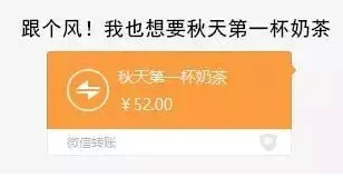 2、一般情侶之間發秋天第一杯奶茶紅包的比較多,數字都是52.0類似的。