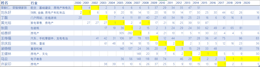 1999年首次放榜以來的20多年裏,有人橫空出世、有人奮起直追、有人重回榜單、有人悄然落榜。
