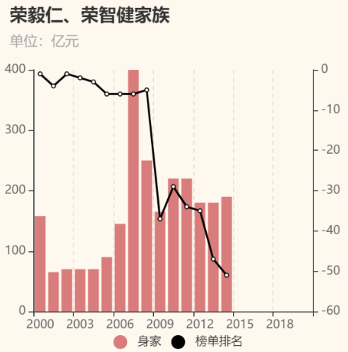 榮毅仁、榮智健家族:(登頂首富年份:2000年、2002年)
