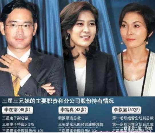 李健熙讓子女們掌管不同的集團業務:大兒子管電子&金融,二女兒管酒店&化工,三女兒管服裝&廣告。