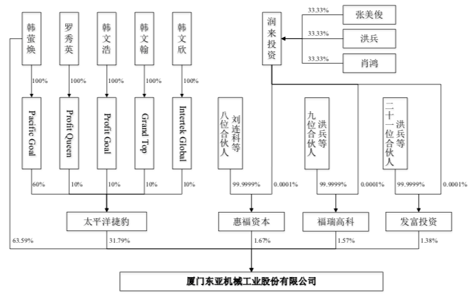 根據中信證券向深圳證券交易所(“深交所”)提交的《關於廈門東亞機械工業股份有限公司首次公開發行股票並在創業板上市申請檔的審核問詢函之回復》(“回復”),擬上市公司的股權架構如下: