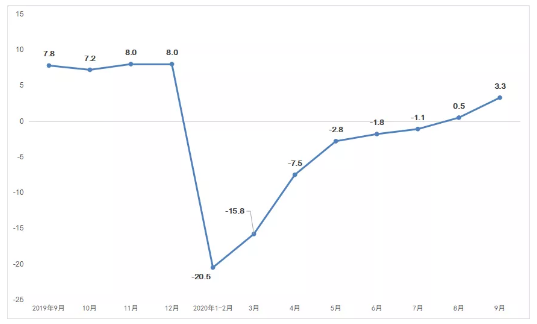 根據國家統計局發佈的數據顯示,今年8月份社會消費品零售總額首次實現正增長,同比增長0.5%;9月份持續好轉,同比增長達到3.3%。
