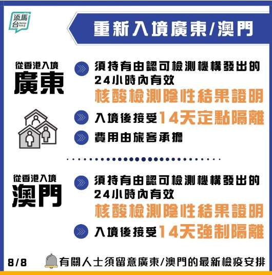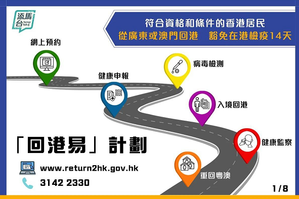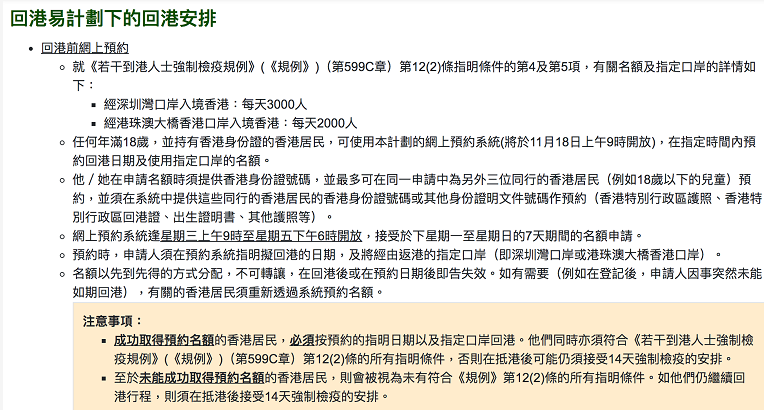 注意:在此計畫下回港人士,如果需要再回到廣東或者澳門,需要接受內地當局的檢疫措施,包括接受隔離14天。