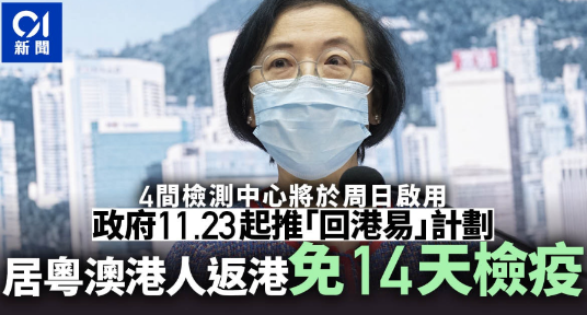 昨天香港舉行預防及控制措施召開記者會,其中對於單向通關(內地港人回港無需14天隔離)給出明確措施,即「回港易」計畫:11月23日起,居廣東省或澳門的香港居民人士,在持有兩地認可的新型冠狀病毒陰性檢測結果下,回港後可豁免強制檢疫14日。