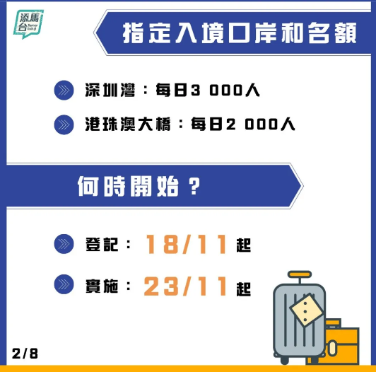 不過,每日有名額限制:深圳灣口岸每日有3000名額,港珠澳大橋人工島口岸則有2000名額。