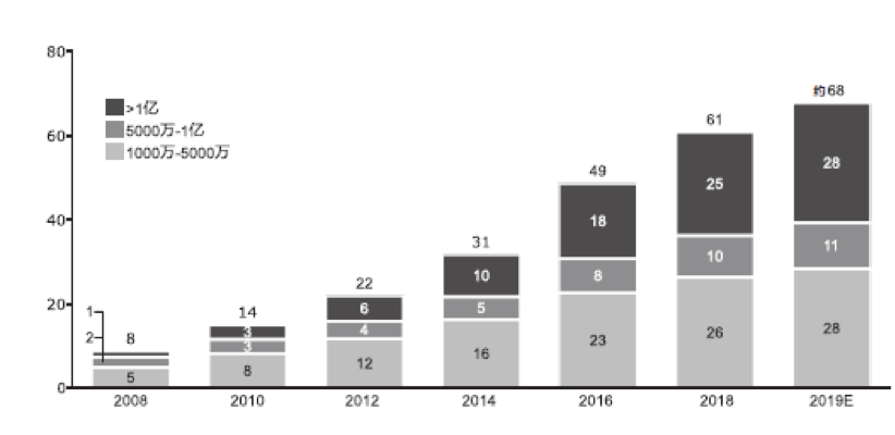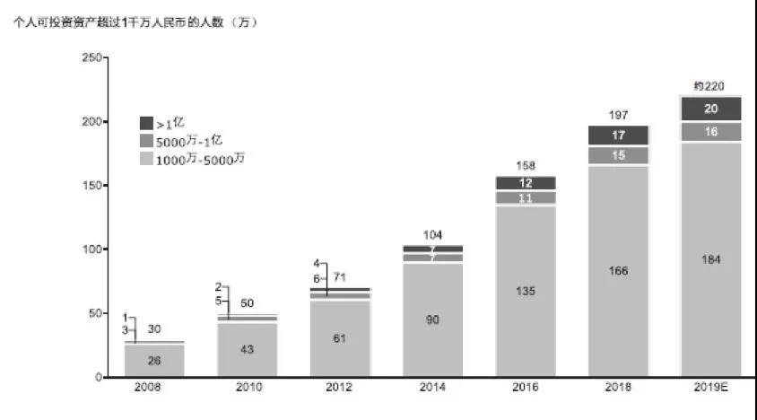 圖1:2008-2019年中國高淨值人群的規模及構成