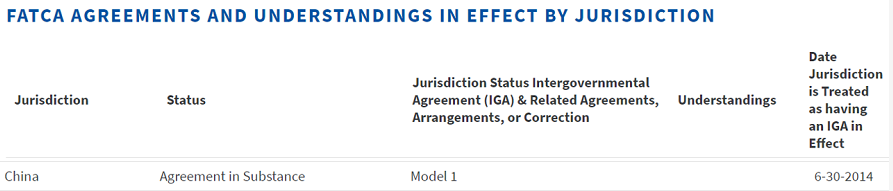 在2014年6月30日中美簽訂正式的政府間替代性協議之後,中國金融機構的監管部門已要求金融機構按照FATCA要求,做盡調,執行開戶新流程等。