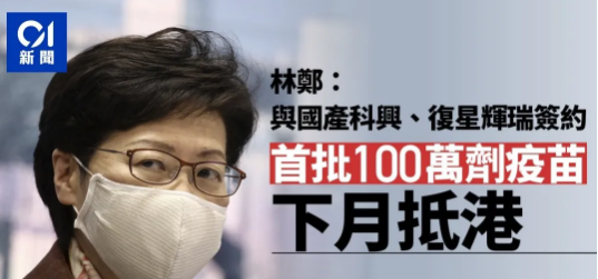 今天(12月11日),林鄭會見記者,對於疫苗採購有了突破性的進展,首批疫苗(100萬劑)最快下個月將到港。老人、醫護人員將會有限獲得接種,最遲明年將全民接種。