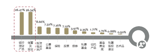 調研顯示,從企業家資產配置結構來看,銀行存款、理財等占比較高,而股票、公募、私募股權投資、貴金屬、藝術品及其他另類投資產品則配置比重較低,分散化程度不足。在本次受訪企業家的家族資產配置中,銀行理財產品與儲蓄現金的占比最高,分別為26.47%和26.34%,其他種類資產的占比均低於10%。