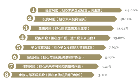 61.77%的企業家認為隨時間推移,其財富管理的重心將逐步轉向財富傳承。由此可見,隨著一代企業家群體步入老年,傳承需求或將在未來逐步湧現。隨著傳承意識的逐漸形成,企業家將逐漸認識到財富傳承過程中存在的各類風險,並開始制定系統的傳承規劃對這些風險進行管理。