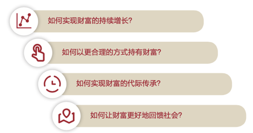 中國企業家是高淨值人群的主要構成部分,也是家族財富管理市場的核心客群。隨著我國創一代企業家群體年齡的增長,企業家對財富管理的需求將從個人財富的保值增值拓展至對家族成員、家族企業及家族整體財富保護、管理、治理與傳承,以企業家為代表的高淨值人群的財富管理需求日趨綜合化、多元化。